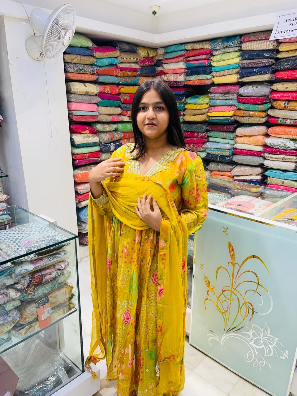 chinon alia cut stylish partywear suit