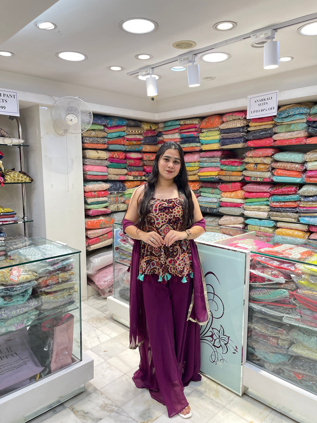 Pure fabric multicolor floral gotta patti lace work sharara suit