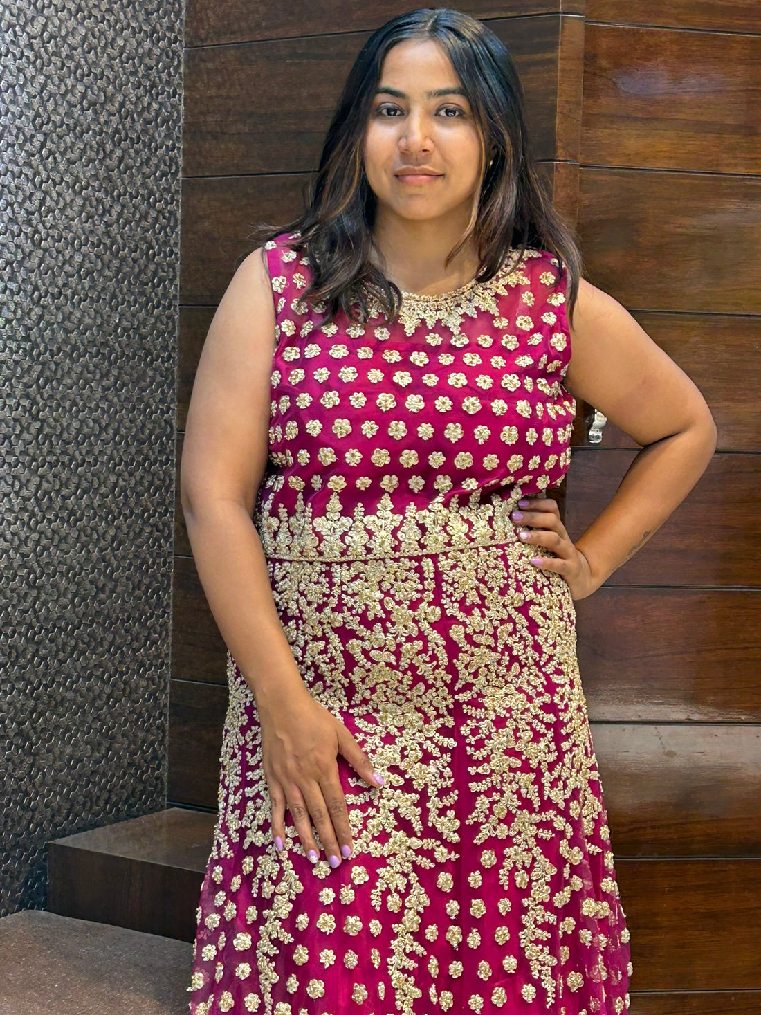long zari zardosi glass stone work one piece bridal indowestern dress