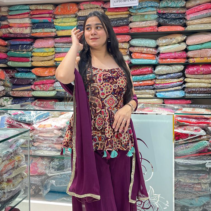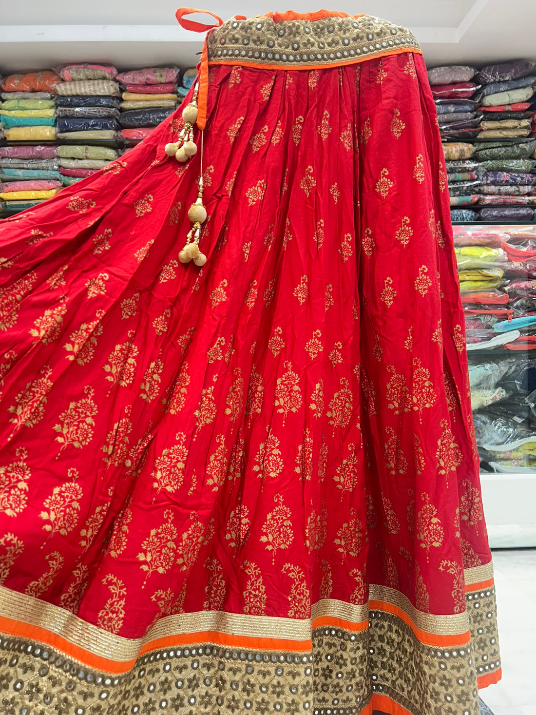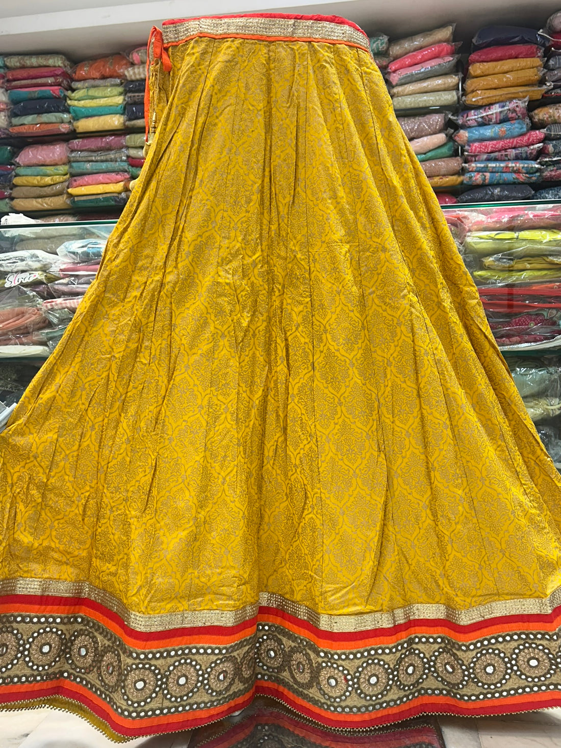 Crafted from pure Chanderi silk, this long partywear skirt combines traditional craftsmanship with elegant design....