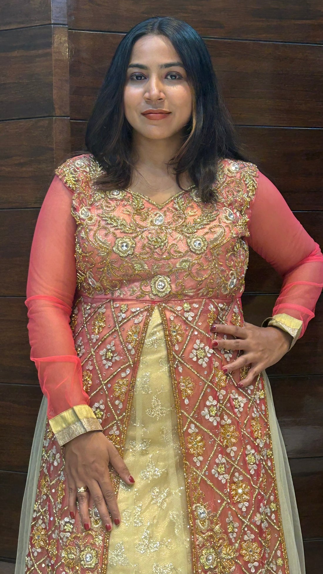 zardosi zari stone work wedding long indo western