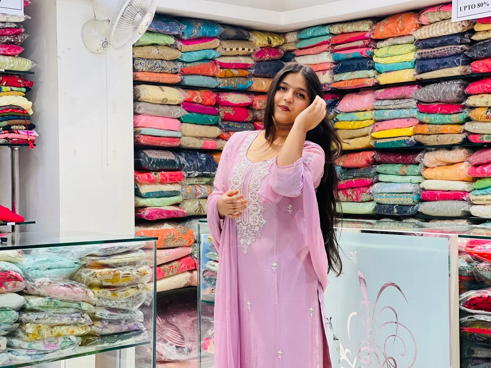 Chinnon fabric kurti plazzo pant with sequence tissue motifs pearl work done over neck and panel giving this attire a different looks for your parties and functions