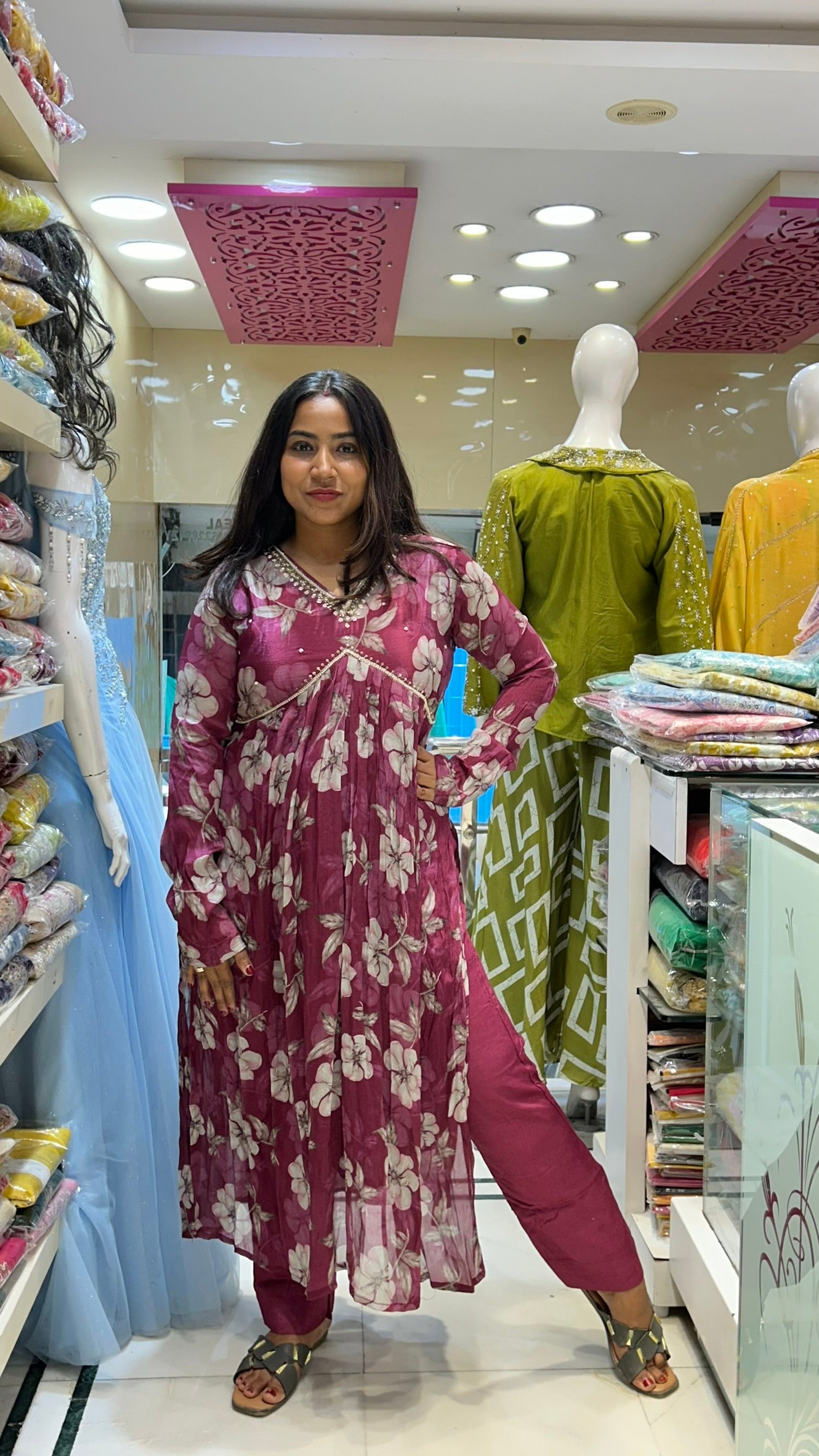 Elevate your festive wardrobe with the Chinon Alia Cut Stylish Partywear Suit, expertly crafted to combine contemporary design with comfort. Its precision tailoring enhances silhouette while the high-quality chinon fabric ensures a graceful drape and subtle sheen, perfect for special occasions. A sophisticated choice for those seeking refined style and easy elegance in party attire.