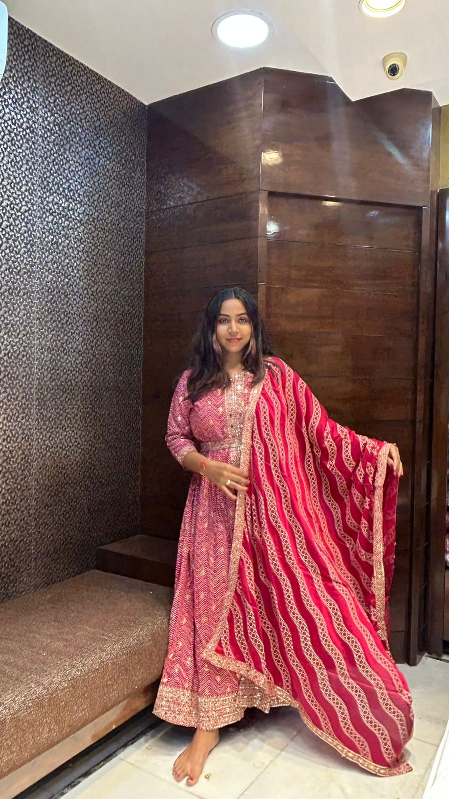 Elevate your festive wardrobe with this designer semi-partywear front open Anarkali suit. Crafted to blend traditional elegance with contemporary style, it offers a graceful silhouette and ease of wear. The front open design adds versatility, allowing you to style it effortlessly for various occasions while ensuring comfort throughout your event. Perfect for those who appreciate refined craftsmanship and a modern touch in ethnic wear.