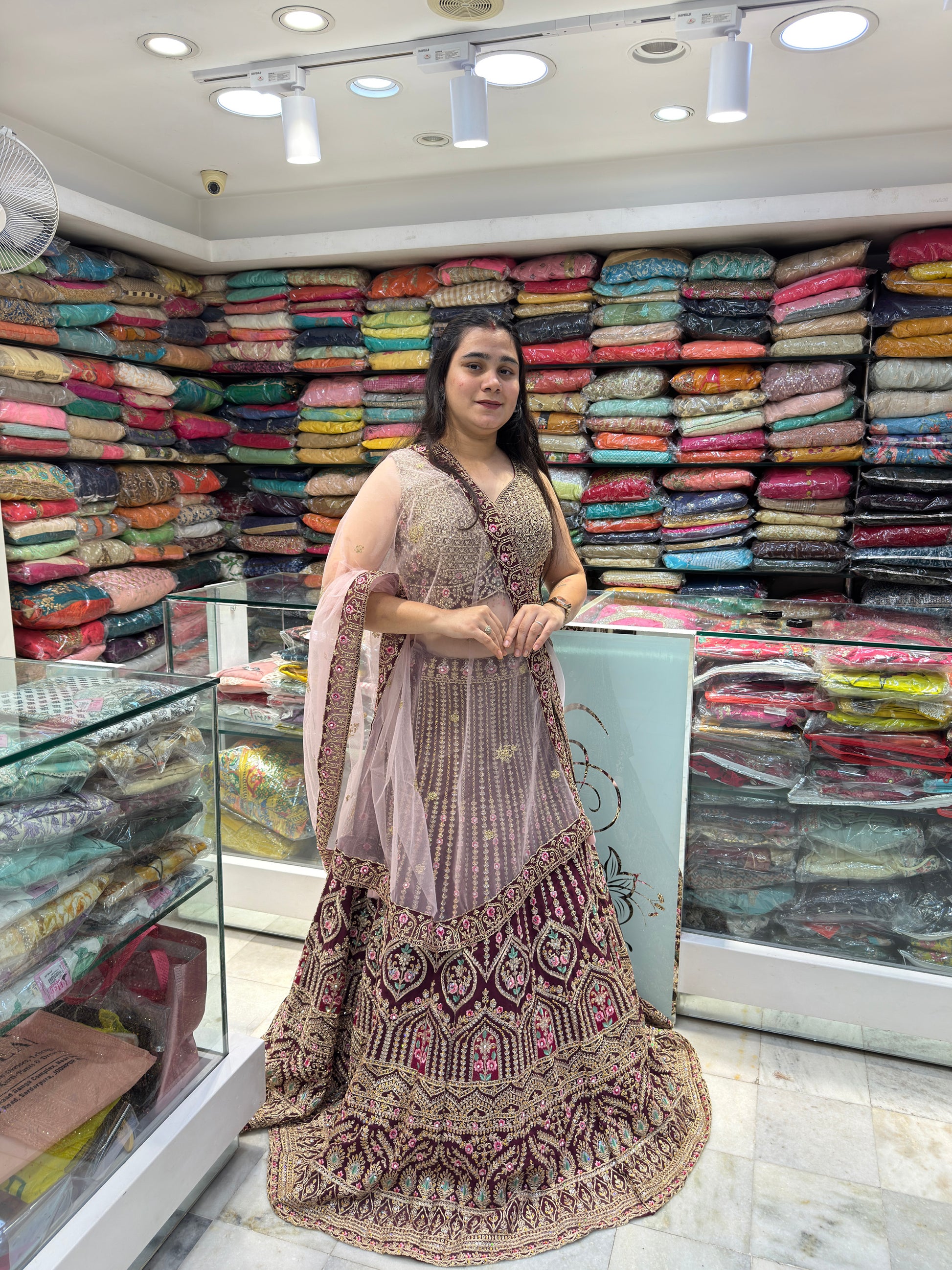 This exquisite Indian bridal lehenga features intricate heavy zari and zardosi embroidery combined with carefully placed stonework, reflecting traditional craftsmanship. Designed for brides seeking an opulent and regal look, the rich embellishments enhance the garmentβs texture and elegance. Perfect for making a grand statement on your wedding day, this lehenga blends heritage artistry with luxurious detailing to ensure you stand out with timeless grace and sophistication.
