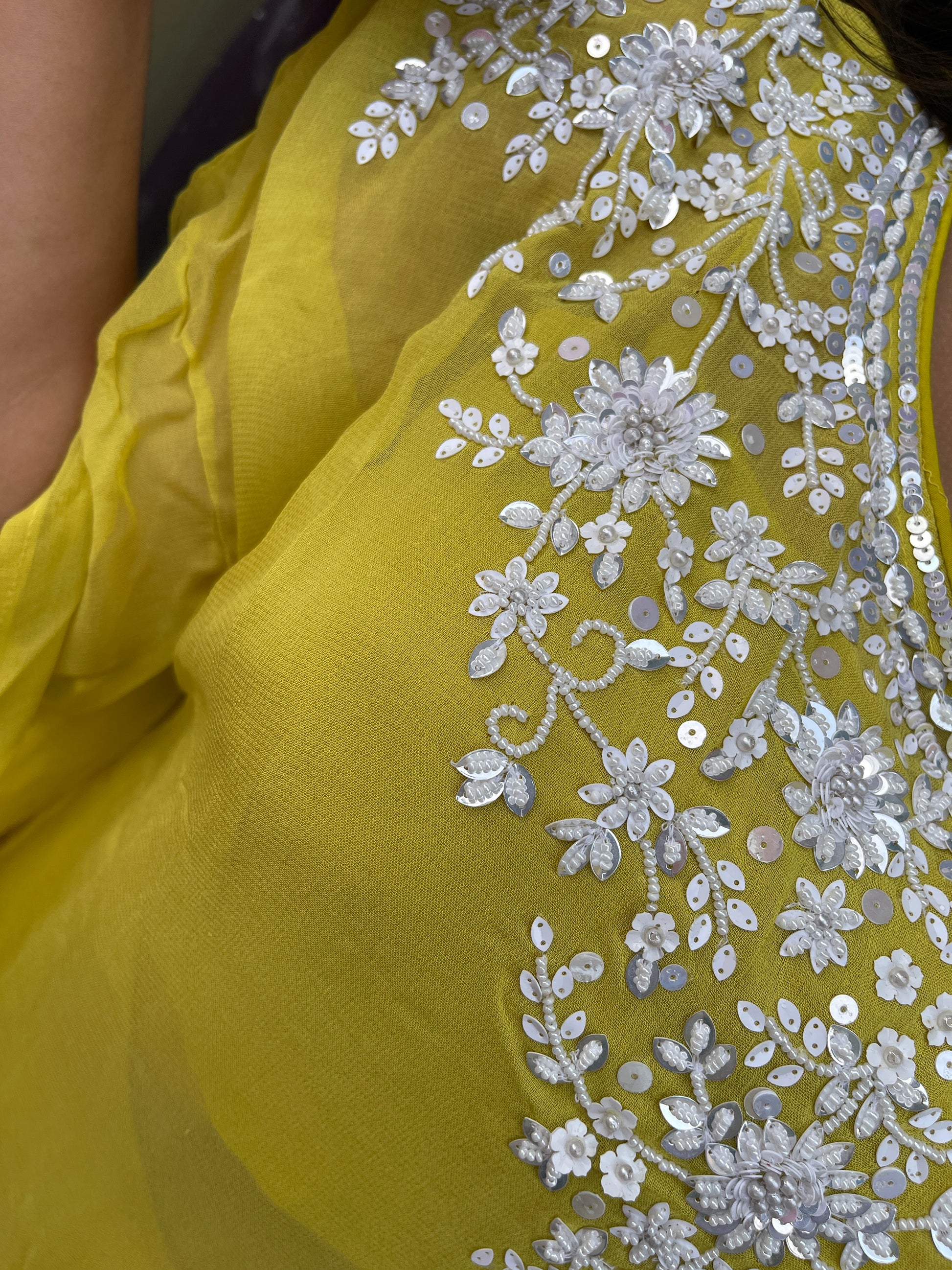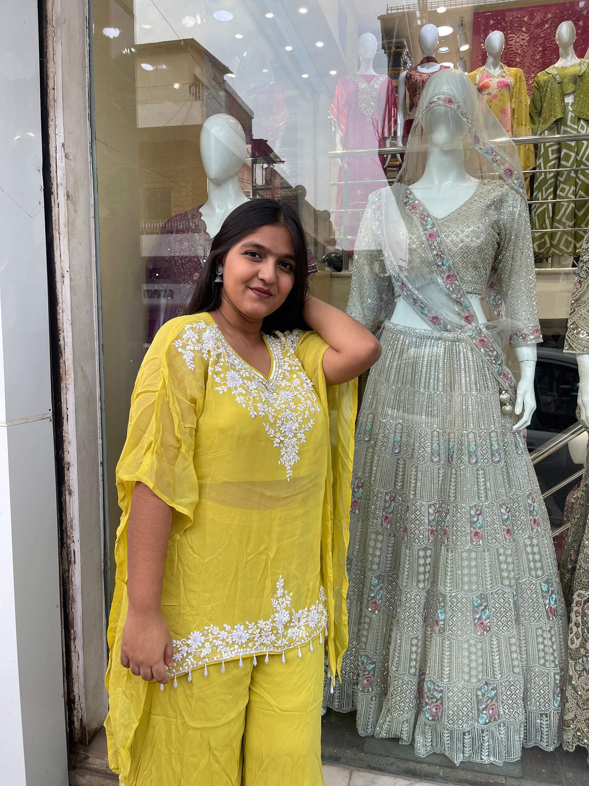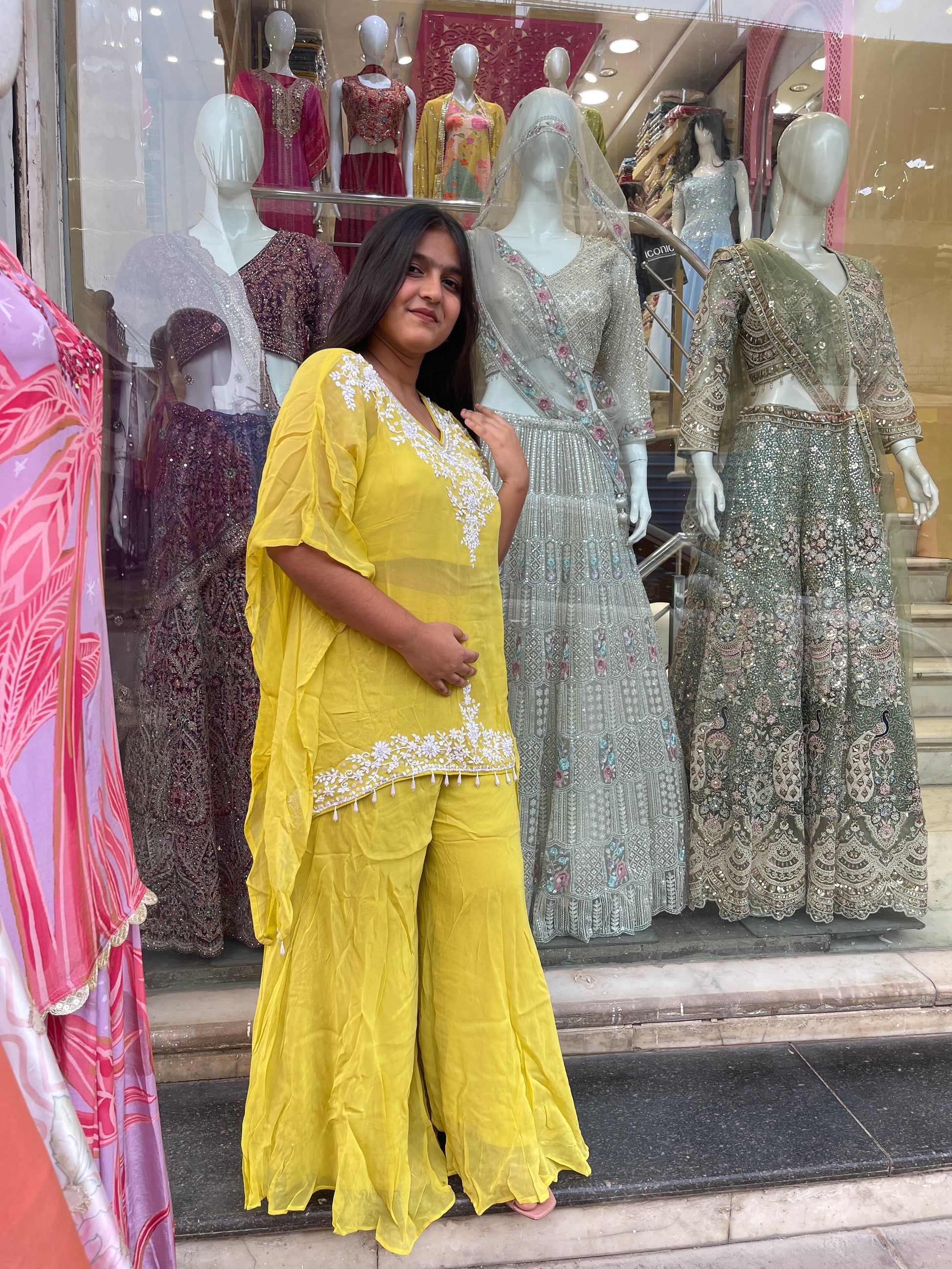 This elegant Indo-Western kaftaan features intricate moti stone work, adding a touch of refined craftsmanship to your wardrobe. Paired with a comfortable plazzo, this set blends traditional artistry with modern comfort, perfect for festive occasions or stylish gatherings. The detailed embellishments elevate the overall look while the breathable fabric ensures ease of wear. Ideal for those who appreciate sophisticated design with a contemporary twist.