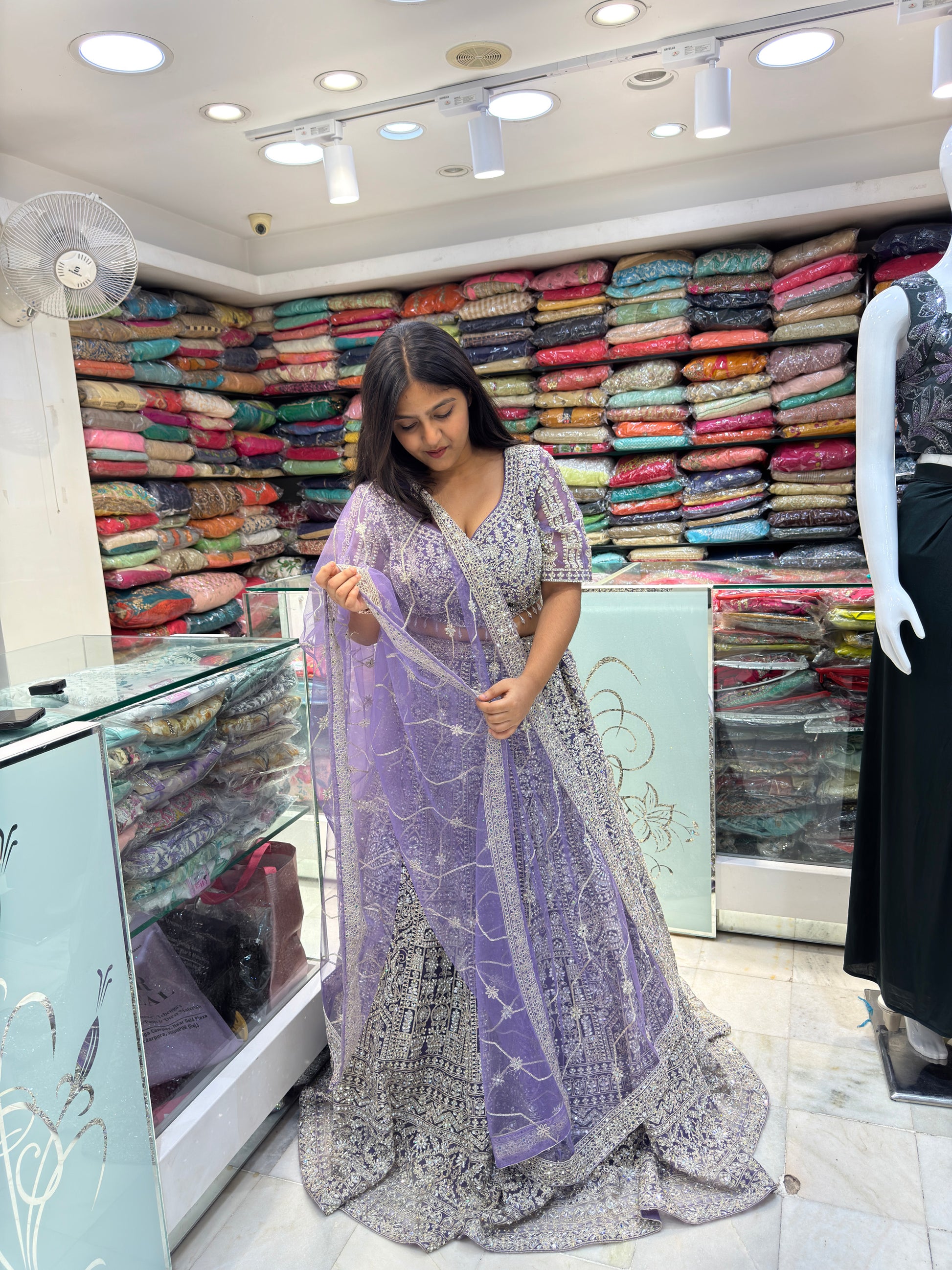 This exquisite bridal wedding lehenga features intricate kundan, thread, zari, and moti work, expertly crafted to enhance your special day. The detailed embellishments create a rich texture and radiant elegance, making it perfect for traditional celebrations. Designed to offer both opulence and comfort, this lehenga ensures you stand out with timeless beauty and sophistication. Ideal for weddings, it combines classic artistry with modern design for a flawless bridal ensemble.
