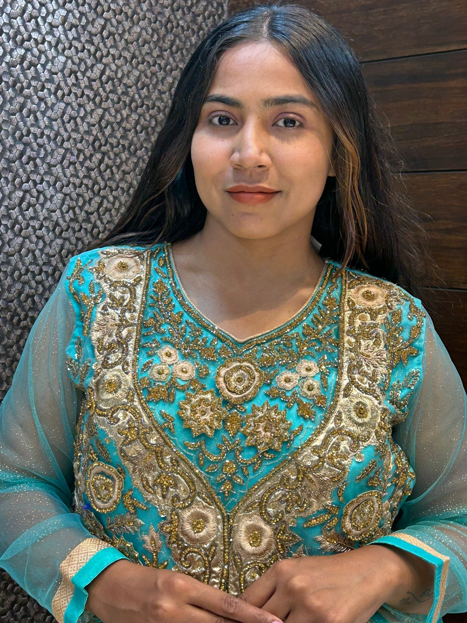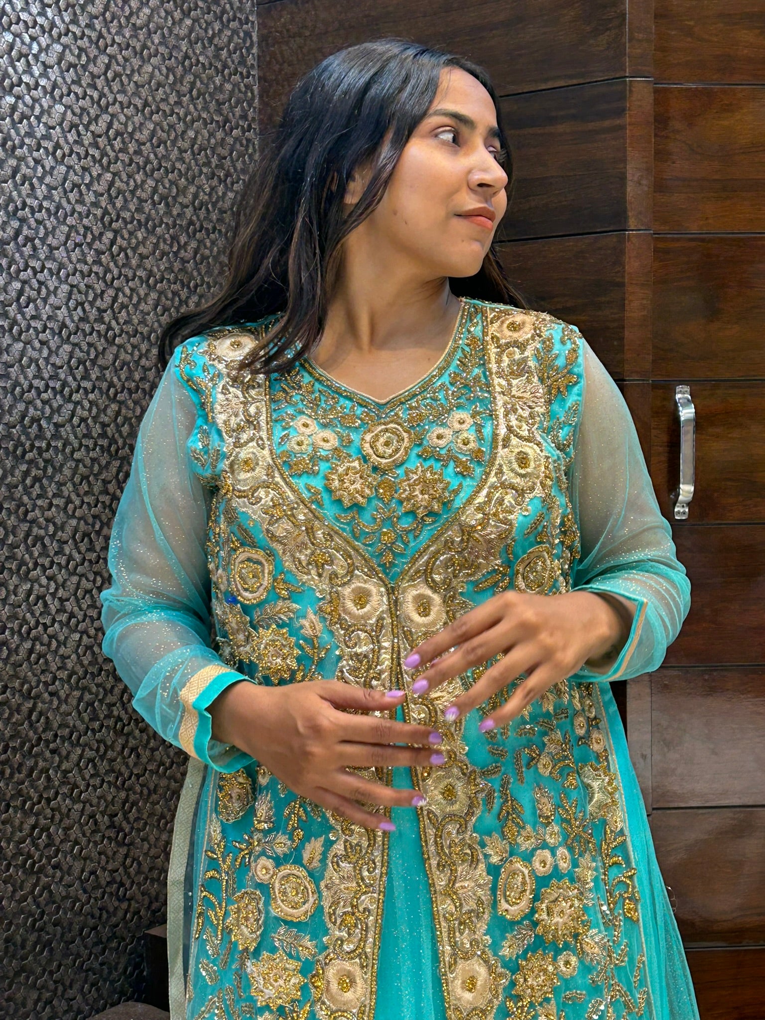 Long indo western zari zardosi stone work bridal lehenga