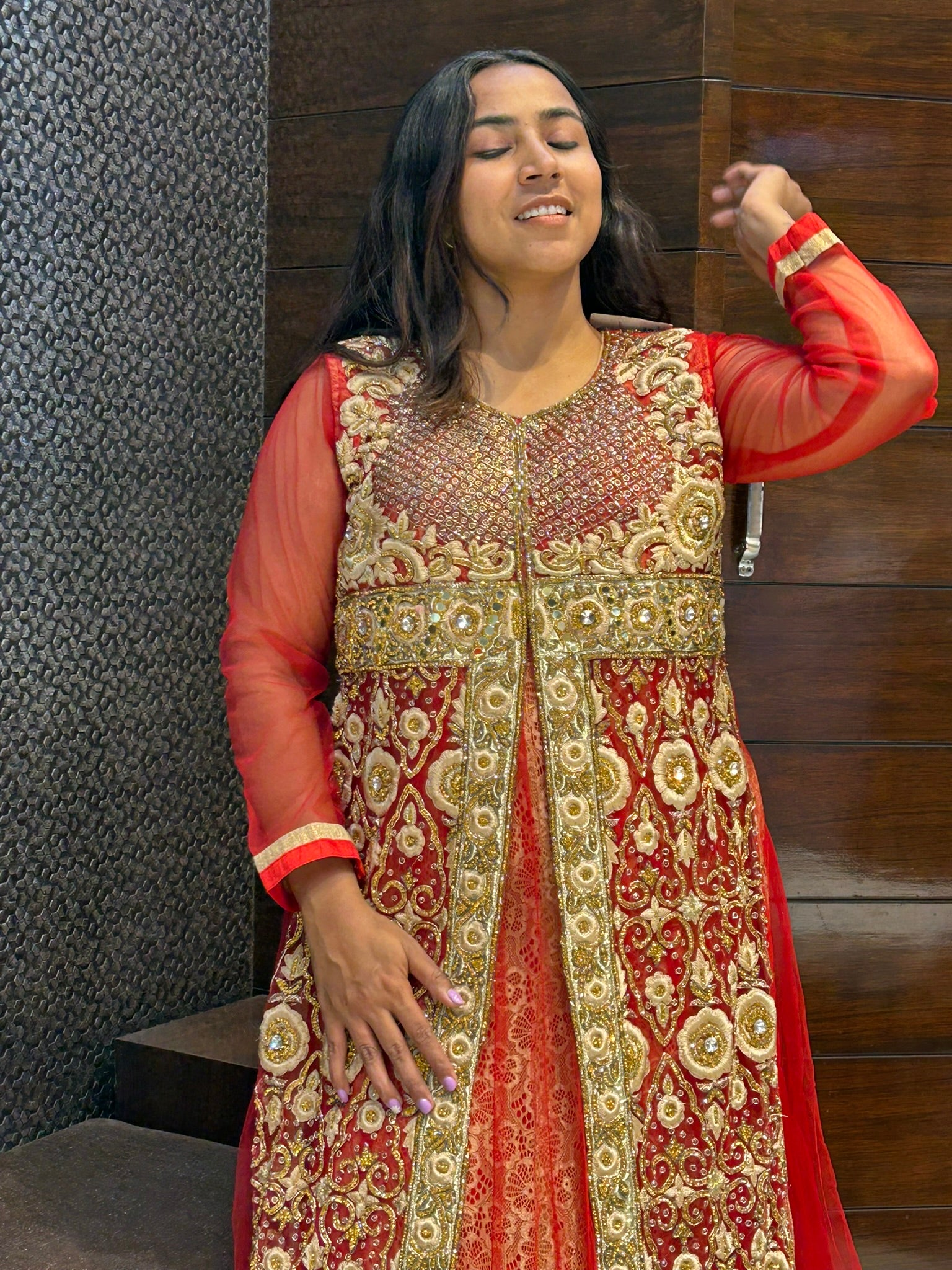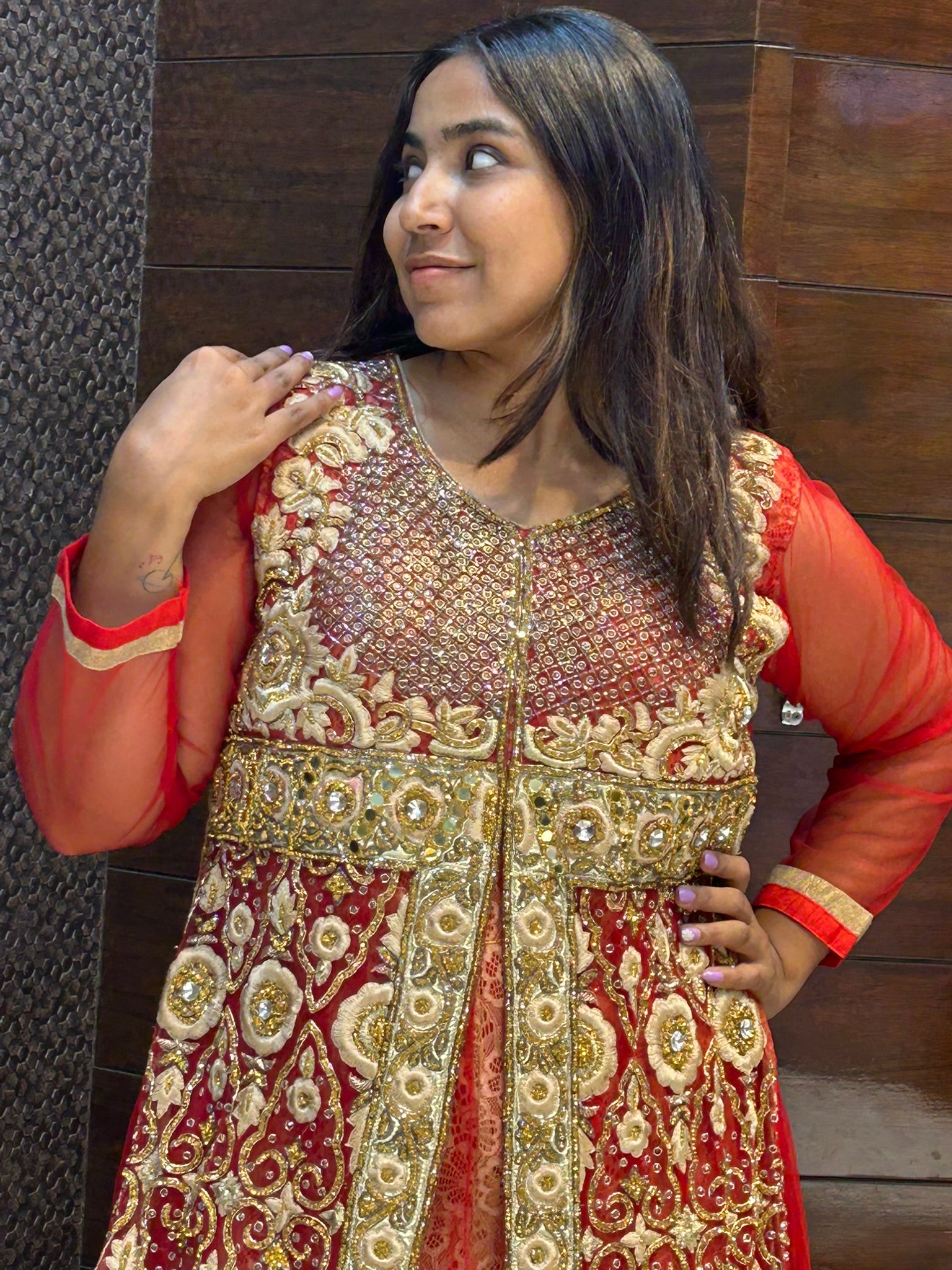This exquisite long one-piece bridal attire blends traditional craftsmanship with modern Indo-Western elegance. Featuring intricate zari and zardosi embroidery enriched with delicate stonework, it offers a luxurious texture and radiant sparkle perfect for special occasions. The ensembleβs seamless design ensures a flattering silhouette, while the detailed handiwork highlights impeccable artistry. Ideal for brides seeking a sophisticated yet contemporary statement, this piece combines heritage techniques with a fashionable edge, making it a standout choice for memorable celebrations.