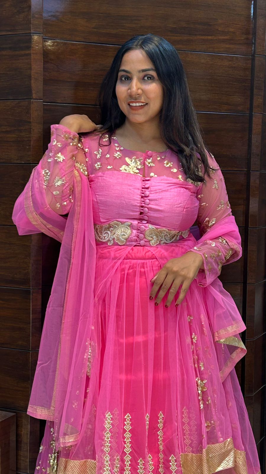 Elevate your festive wardrobe with this long Indo-Western lehenga crafted in luxurious silk and delicate net. Featuring intricate embroidery that blends traditional craftsmanship with contemporary style, this lehenga offers a sophisticated silhouette perfect for weddings and special occasions. The combination of rich fabrics ensures both elegance and comfort, making it a refined choice for those seeking a modern yet classic ethnic ensemble.