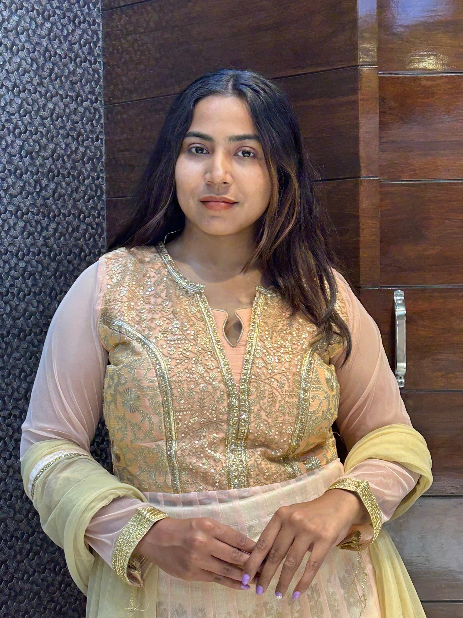 This indowestern wedding outfit features a delicate net long top paired with a luxurious silk lehenga, combining traditional elegance with modern design. The breathable net fabric ensures comfort, while the rich silk lehenga adds a regal touch, making it perfect for special occasions. Expertly crafted, this ensemble offers a graceful silhouette that enhances your presence at any wedding event.