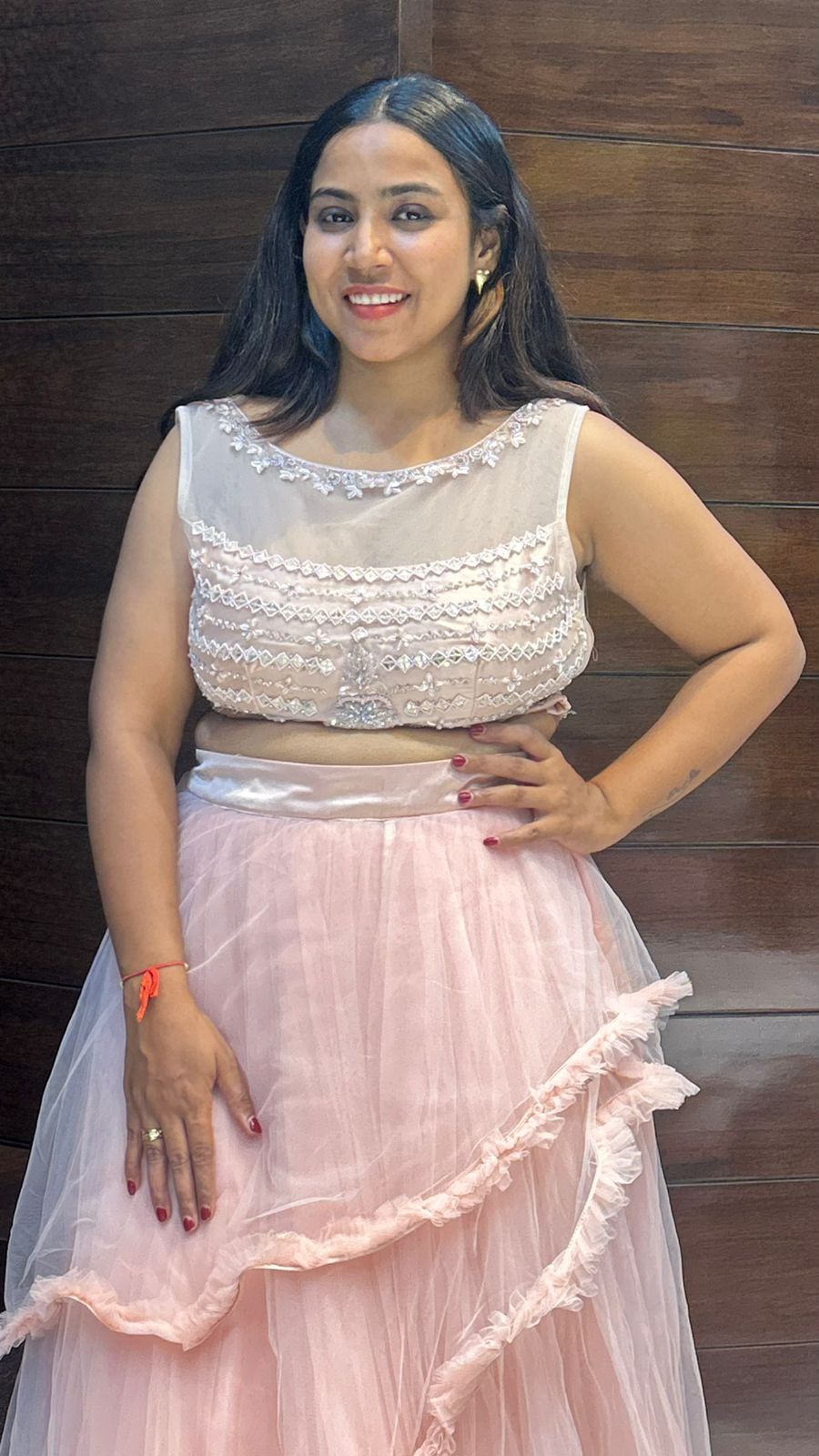 Elevate your festive wardrobe with this Partywear Net Flaired Indo Western Designer Crop Top. Crafted from delicate net fabric, it offers a graceful flared silhouette for a stylish and contemporary look. Perfect for celebrations, it combines traditional Indian aesthetics with modern design, ensuring standout elegance at any event. Comfortable yet striking, this crop top pairs beautifully with lehengas, palazzos, or skirts for versatile styling options.