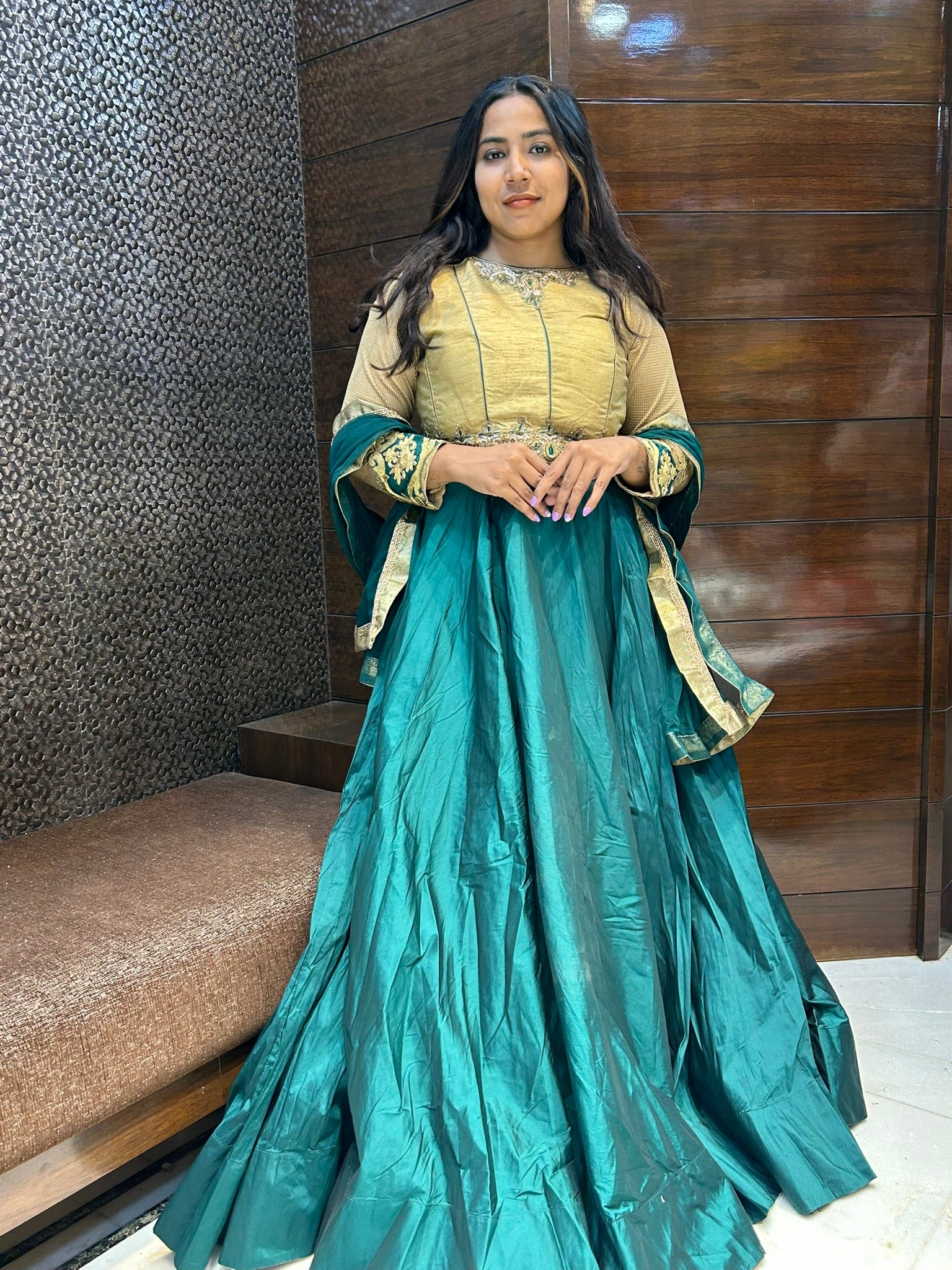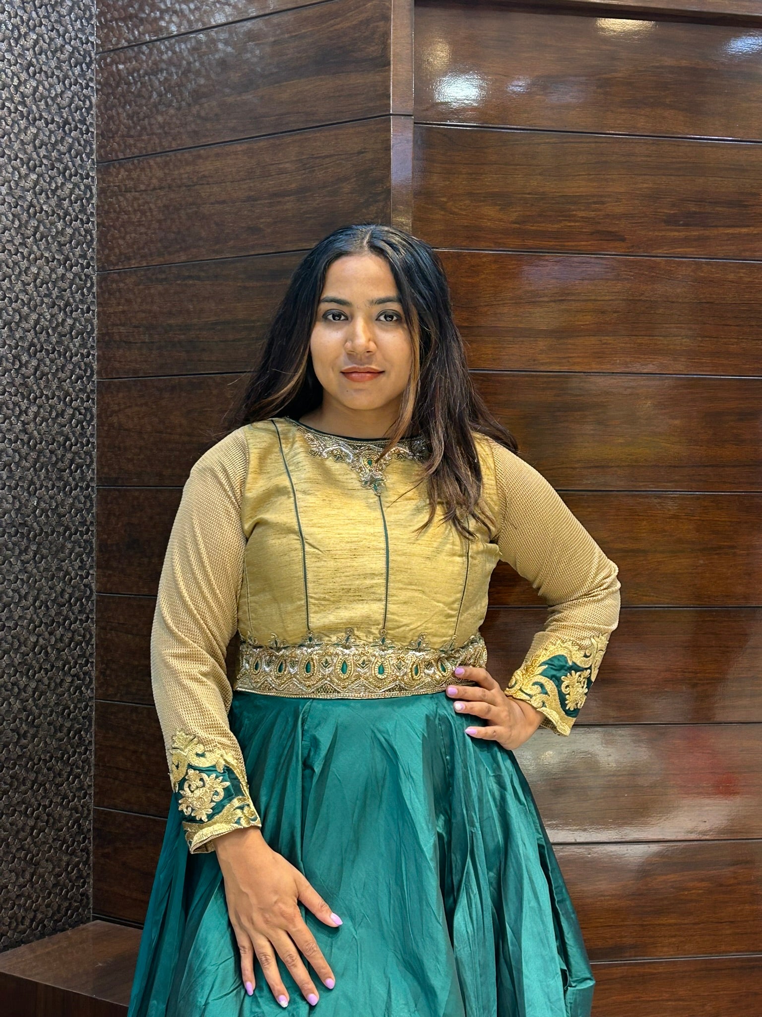 Elevate your evening look with this Tapeda long-sleeve partywear gown in elegant teal green. Designed with careful attention to detail, the gown offers a flattering silhouette and comfortable fit for extended wear. Its rich color and sophisticated style make it ideal for formal events and celebrations, ensuring you stand out with understated grace. Perfectly suited for those who appreciate refined craftsmanship and timeless fashion.